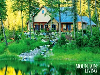OMG… that house! I love it. The stone work, the design. And the water out front. I love love love water. I agree a creek and a waterfall would be awesome.