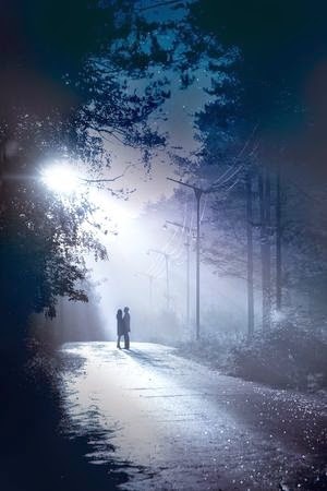 A small light flickered across the dark road and she quickly fumbled with her own flashlight. She flicked it on three times in a row and smile as Danny burst out of woods. She hurried out to meet him and they stood a moment just smiling like loons at each other.
