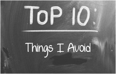 Welcome to another Top 10! This week we’re chatting about things (events, people) whatever we avoid. As always, this list is in no particular order. Also, it all doesn’t necessarily have anything to do with writing. Let’s get started: